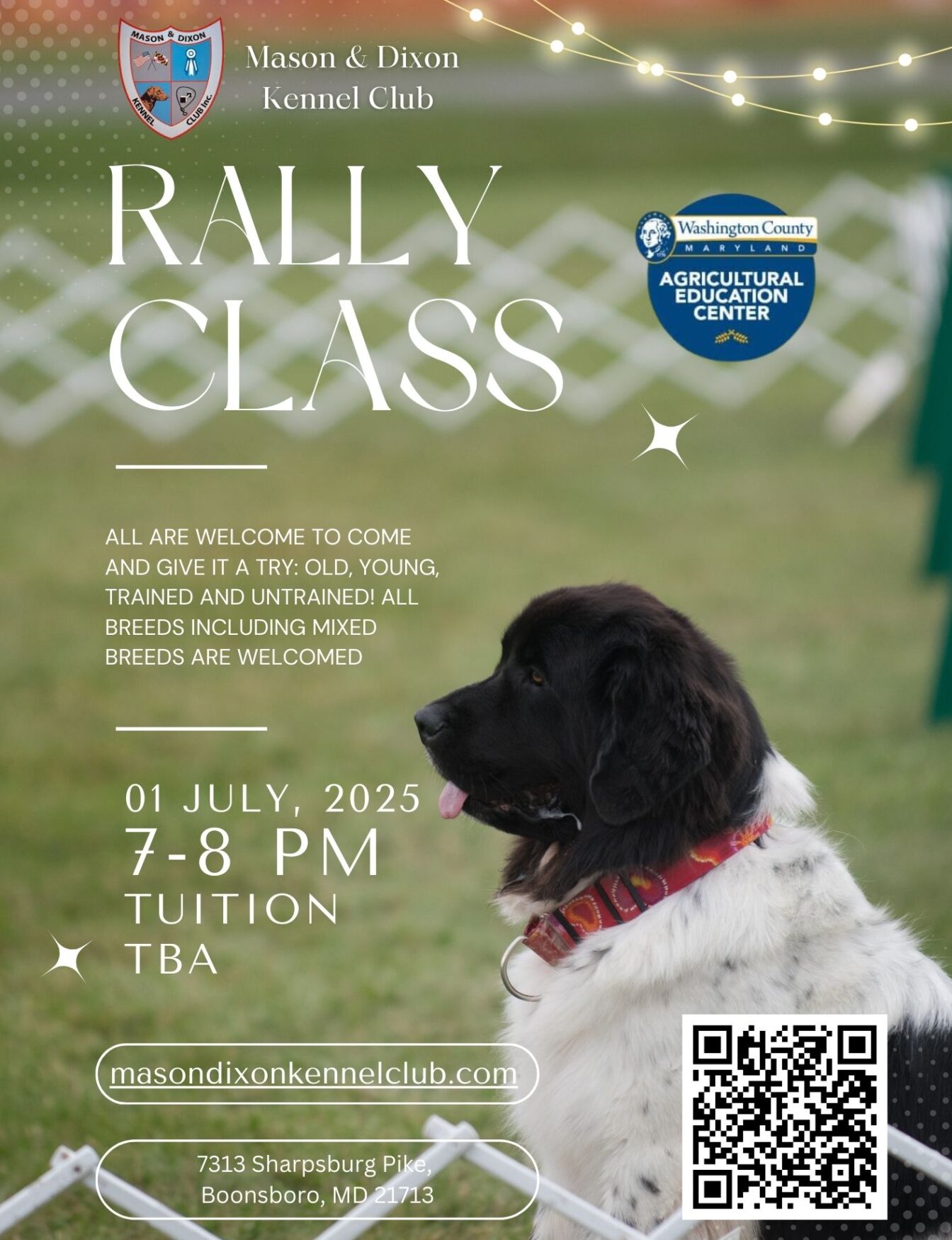 We recently added non-slip rubber flooring to the building, and we also have a large outdoor area totally fenced in for training. You’re invited to come and visit this wonderful facility at the Washington County Agricultural Education Center 7313 Sharpsburg Pike, Boonsboro, MD